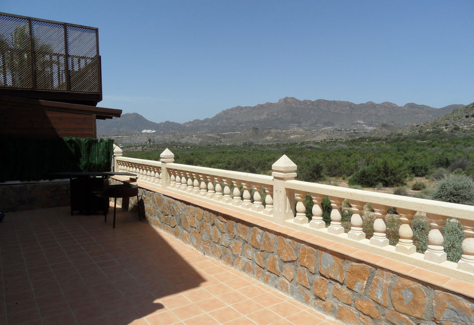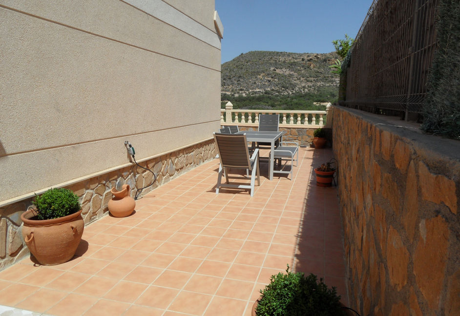 Acceso al solárium en la primera planta con vistas parciales al mar y a la montaña.